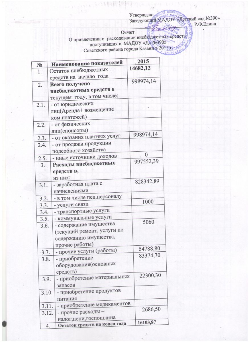 Отчет о привлечении и расходовании внебюджетных средств за 2015 год