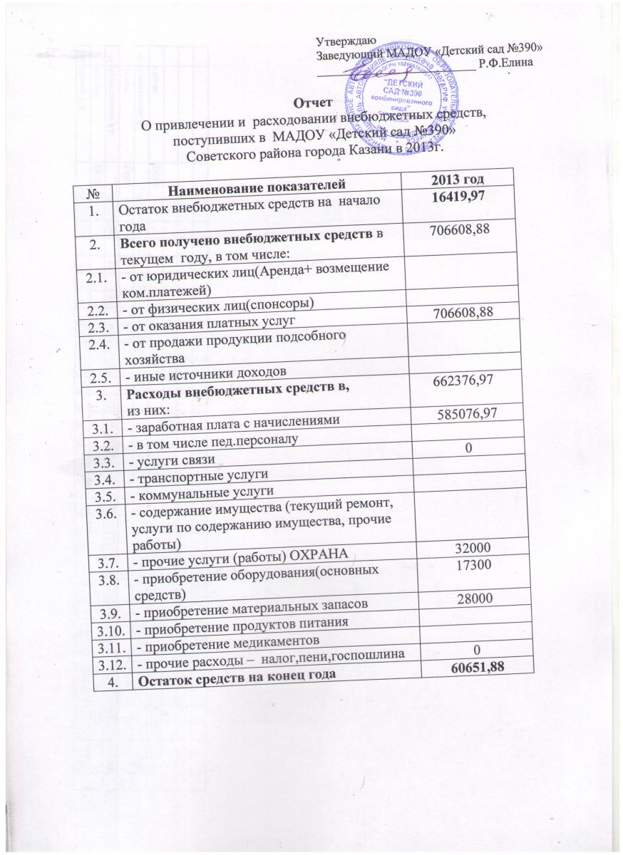 Отчет о привлечении и расходовании внебюджетных средств за 2013 год