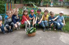 Пока школьники корпят над учебниками, воспитанники нашего детского сада не сидят без дела. Трудятся на собственном огороде. Этим летом они посадили капусту, баклажаны, кабачки, кукурузу, горох, лук, морковь, огурцы, помидоры и салат. Несколько месяцев дети тщательно ухаживали за грядками: окучивали, поливали, боролись с сорняками. Вот и осень подходит к концу и вот какой долгожданный урожай она нам принесла.