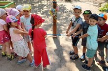 Сегодня в детском саду прошел татарский народный праздник Сабантуй! Сабантуй - это веселое празднование окончания полевых и посевных работ, на котором не утихают национальные песни и пляски, шуточные конкурсы и спортивные состязания. Дети всех групп приняли участие в национальных играх, показав Батыру и Мырау (гостям праздника) свою силу, ловкость, смелость. У ребят надолго останутся незабываемые впечатления об этом ярком и красочном празднике.