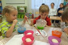 Всем известно, что мыльные пузыри вызывают положительные эмоции не только у детей, но и у взрослых. Это незабываемое и захватывающее зрелище способно привнести оживление в любой праздник. Особенно интересно самому принимать непосредственное участие при создании сказки. Раскроем несколько секретов создания пузырей, которые пригодятся вам при организации домашнего праздника либо просто при игре с ребенком. Ваше чадо наверняка оценит старания и будет в восторге! Изготавливаем совместно с детьми жидкость для мыльных пузырей:100мл.воды, кусочек мыло (можно добавить немного глицерина).и добавляем разного цвета красок.При помощи различных предметов выдуваем пузыри . На занятиях дети посредством трубочки выдували большой разноцветный мыльный пузырь. .Детям очень понравилось этот эксперимент, были очень довольны!!! -