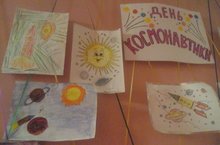 В детском саду организована выставка детских рисунков, посвященная ко Дню Космонавтики.