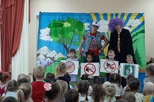 Театр "Берегите природу!" 18.11.2019 Сегодня у нас в гостях были артисты со спектаклем "Берегите природу". Дети посмотрели спектакль , поиграли с героями представления. Рассказали о природоохранных знаках, которые принесли гости.