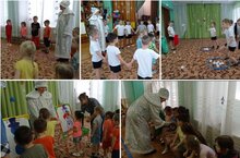 13 января дети старших групп проводили Старый Новый год! В гости были приглашены дети младших групп. На праздник к ним явилась озорная Баба Яга, услышав веселье и смех. И ей захотелось вместе с ребятами поиграть в русские народные игры: «Рукавица», «Шел козел по лесу», «Бег в валенках», «Перенеси воду в ложке». Праздник получился радостный, полный неописуемых впечатлений и волшебства.
