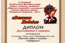 Ансамбль "Сударушка" стал дипломантом II степени в номинации "Вокал соло" и "Хореография" до 6 лет. Поздравляем наших воспитанниц и педагогов Каримуллину В.Р., Калимуллину Л.А.