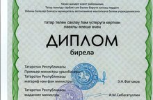 Казан шәһәре Совет районының Татар телендә тәрбия һәм белем бирүче катнаш төрдәге 166нчы балалар бакчасы муниципаль автономияле мәктәпкәчә белем учреждениясе ТАТАРСТАН РЕСПУБЛИКАСЫ МӘГАРИФ ҺӘМ ФӘН МИНИСТРЛЫГЫ, ТАТАРСТАН РЕСПУБЛИКАСЫ МӘДӘНИЯТ МИНИСТРЛЫГЫ тарафыннан ТАТАР ТЕЛЕН САКЛАУ ҺӘМ ҮСТЕРҮГӘ КЕРТКӘН ЛАЕКЛЫ ӨЛЕШЕ ӨЧЕН дипломга лаек булды.
