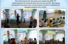 В нашем детском саду прошел республиканский семинар для педагогов ДОУ РТ по теме: "Наблюдение за игрвой деятельностью детей. Методика руководства развитием игровой деятельности ребенка на каждом возрастном этапе" (Приволжский межрегиональный центр повышения квалификации и профессиональной переподготовки работников образования Института психологии и образования ФГАОУ ВО "Казанский (Приволжский) федеральный университет")