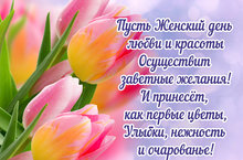 Уважаемые коллеги-педагоги, с прекрасным праздником 8 марта! Пусть жизнь будет сказкой, в которой вы всегда будете главными, любимыми героями! Здоровья, успехов, интересной работы и прилежных учеников, которые никогда не огорчают и не забывают вас! Будьте самыми милыми, добрыми, любимыми, светлыми, здоровыми и жизнерадостными!