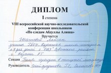 Уткин Данил и Габитов Дамир приняли участие в VIII-научно-практической конференции (секция история) и получили звание "Победитель" Поздравляем ребят и учителя Анисимова Г.Ю.