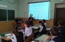 Открытое внеклассное мероприятие, посвященное 60-летию со дня первого полета человекав Космос провла учитель биологии Кокорина Л.А. в рамках предметной недели с 12а и 12 б классами на тему "Час общения с Юрием Гагариным - Знаете, каким он парнем был"