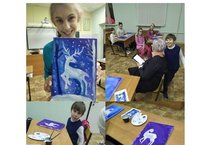 Сегодня наши ребята рисовали картину на зимнюю тему. Сначала раскрашивали фон тремя цветами. А потом белым цветом рисовали северного оленя и снегопад. С помощью акрила на холсте. А также, Лариса, коллега из юношеской библиотеки, рассказала им интересный сказку про приключения рождественского оленя. Ребята слушали с интересом!!!)))