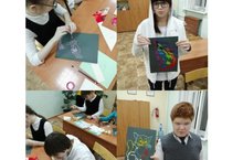 Сразу после каникул провели занятие по Арт терапии. Пользовались акриловыми красками с помощью ватных палочек и кисточек, рисовали на свободную тему.
