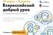По Указу Президента Российской Федерации от 06.12.2017 № 583 2018 год объявлен Годом добровольца в России. В связи с этим центр онлайн-обучения "Фоксфорд" совместно с Ассоциацией волонтерских центров и при поддержке общероссийской общественно-государственной детско-юношеской организации Российское движение школьников проводит просветительскую программу для учащихся 5 - 11 классов общеобразовательных учреждений Российской Федерации "Всероссийский добрый урок". Программа направлена на популяризацию идей добровольчества и повышение информированности о деятельности волонтерских организаций в субъектах РФ. Организаторами будет составлен региональный рейтинг самых активных школ и педагогических коллективов-участников проекта с выдачей благодарственных писем. "Всероссийский добрый урок" пройдет с 26 марта по 08 апреля 2018 г. в два этапа: