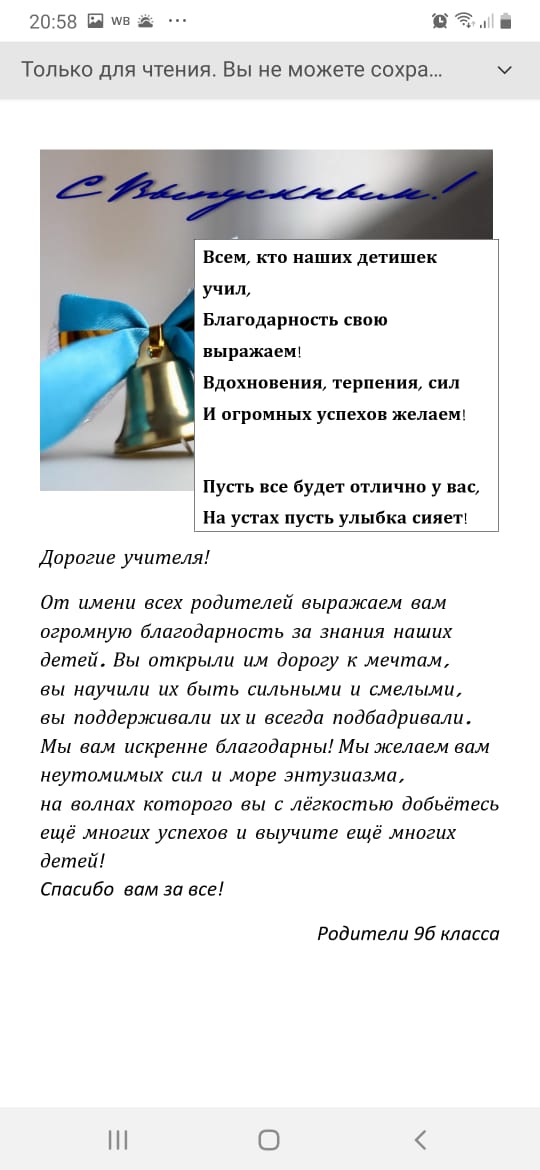 30 мая с порога школы для ее выпускников в онлайн формате прозвучал последний звонок. Это еще не прощание со школой — впереди экзамены. Но это не делает нынешний день менее особым и для самих одиннадцатиклассников, и для их родителей, и для учителей. Мы все делимся на тех, у кого этот день в жизни уже был, и тех, кому он предстоит. Многие вспоминают, как их родители за ручку привели в первый класс, получили свою первую пятерку, началась настоящая дружба, как расстраивались из-за нерешенных задач. И вот 11 лет пролетели словно один миг. «Слезы стоят в глазах. Очень хочется всем пожелать только радости в этот день, напутствовать их только самыми добрыми словами, чтобы тот путь, который они выбрали, был для них очень легким», — пожелал директор школы Иван Александрович Филатов.В этот день много добрых слов адресовано дорогим учителям. Они утешали, когда не решалась задача, помогали советом, все 11 лет были рядом.«С одной стороны, испытываешь жалость, потому что уходят хорошие дети, к которым привыкли, которых любишь, в которых много вложено. С другой стороны, испытываешь гордость за то, что они стали взрослые, за то, что они многого добились», — поделилась классный руководитель Татьяна Васильевна Есина. Именно для них, своих выпускников, педагоги сегодня танцуют вальс, поют песни. А после в небо по традиции выпускают шары. Уроки закончились, но впереди самый ответственный период — сдача ЕГЭ. И только после сдачи экзаменов выпускники с грустью смогут точно сказать, что школьные годы позади.