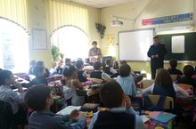 Сегодня к нам в школу приходил старший госинспектор ГИБДД г.Казани - Егоренков А.А. Он выступил с лекцией о правилах дорожного движения во время осенних каникул перед учениками 2а, 3б, 6а, 6б классов.