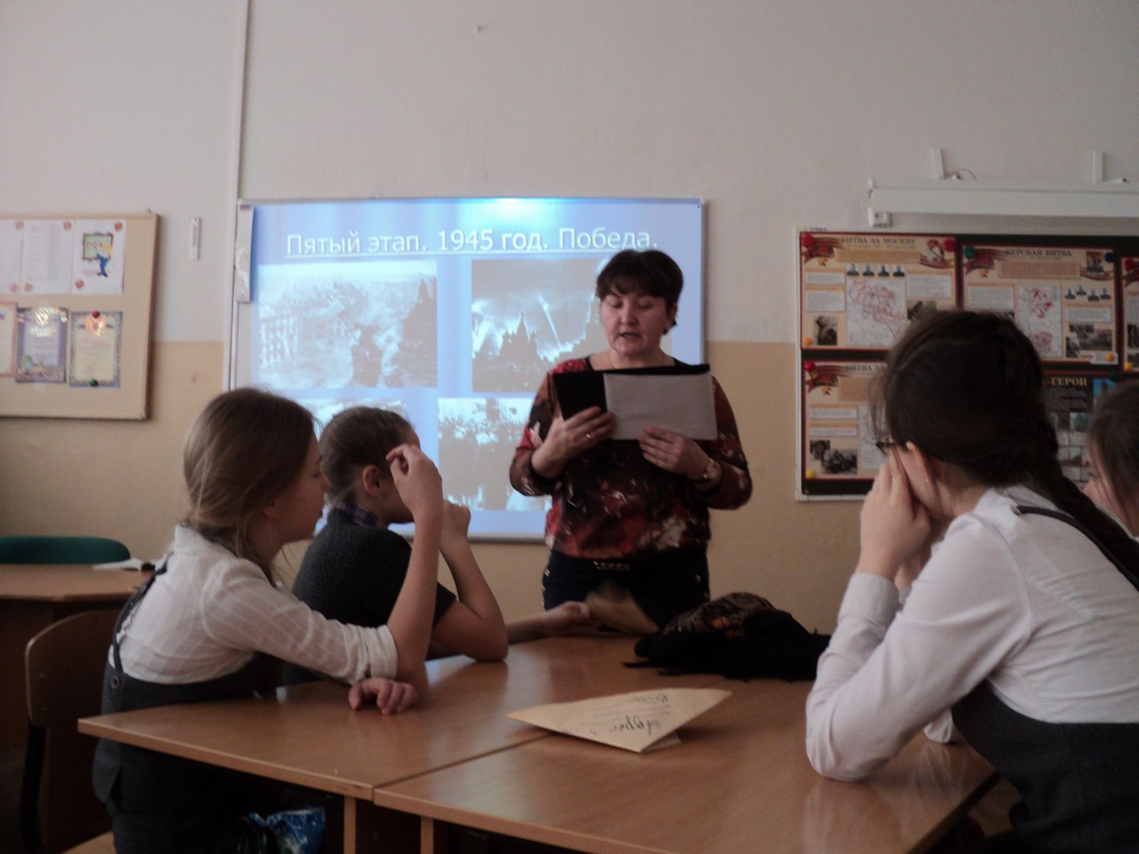 В рамках недели предметов гуманитарного цикла, учителями истории были проведены мероприятия посвященные 70летию Победы.Был проведена интеллектуально-познавательная игра "Что я знаю о войне" среди команд 7А и 7Б классов, учитель Сафиуллова Л.Ф. Были разные тематические конкурсы по теме Великая Отечественная война 1941-1945 гг. Мероприяте показало, что ребята знают об этой трагической странице в нашей истории.