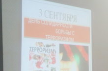 2 сентября в гимназии проходил единый классный час месячника безопасности Дня солидарности в борьбе с терроризмом и месячника «Экстремизму-Нет!» Целью данного мероприятия было формирование общественного сознания и гражданской позиции подрастающего поколения, объяснить сущность терроризма; содействовать формированию толерантности и профилактики межнациональной розни и нетерпимости; ознакомить учащихся с основными правилами поведения в условиях теракта (памятка каждому учащемуся), воспитание ответственного отношения к своей жизни и жизни окружающих
