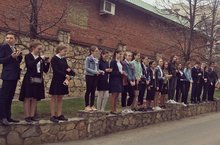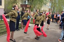 7 мая учащиеся 5Д класса Школы на Космонавтов (участники отряда «Волонтёры Победы») приняли активное участие во Всероссийском флешмобе «День Победы» на территории Казанского Кремля.