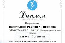 Учитель родного (татарского) языка и литературы Валиуллина Рамзия Хашимовна стала Лауреатом I степени Всероссийского конкурса педагогов «Педагогический совет» в номинации «Современные образовательные технологии». Поздравляем!