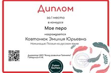 I место у Ковтонюк Эмилии Юрьевны, учащейся 7 «Д» класса.