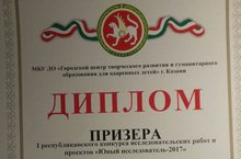15 апреля на базе «Городского центра творческого развития и гуманитарного образования для одаренных детей» города Казани состоялся I Республиканский конкурс исследовательских работ и проектов «Юный исследователь – 2017».