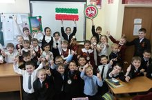 Ученики 5К класса (Абдулова А., Абдуллина Э., Иванова К., Нуруллина Р., Шамсутдинова А.) провели в 1D классе внеклассное мероприятие "Я знаю государственную символику родной республики".
