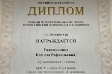 Победитель регионального этапа Всероссийской олимпиады школьников по литературе 23.01.2022
