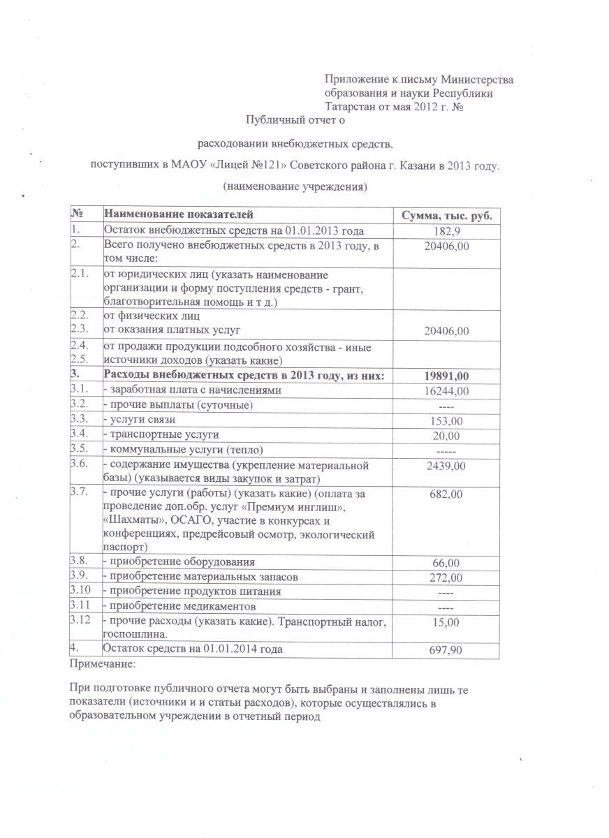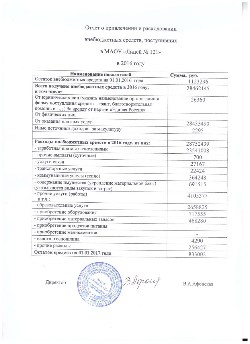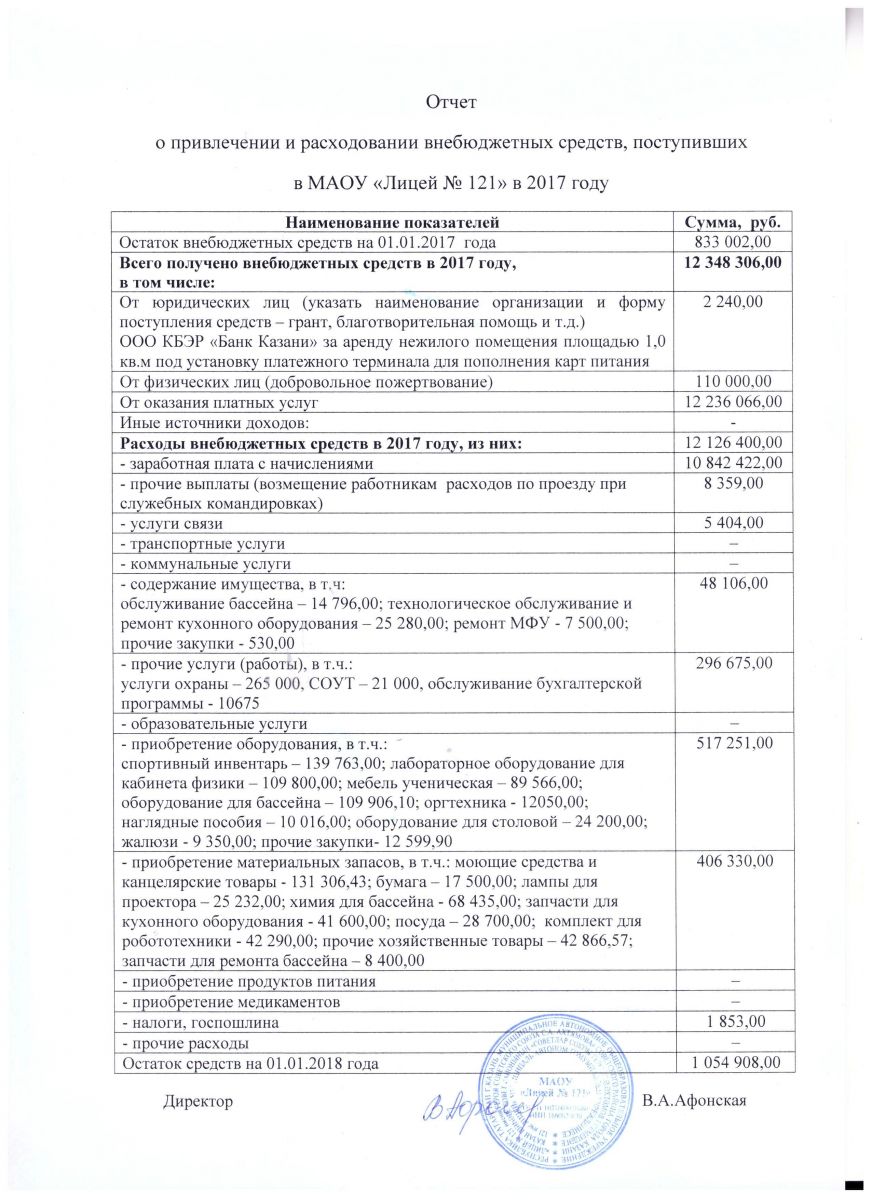 Отчет о поступлении и расходовании внебюджетных средств