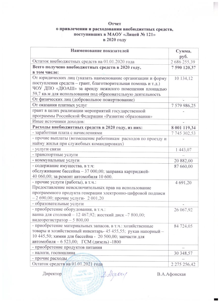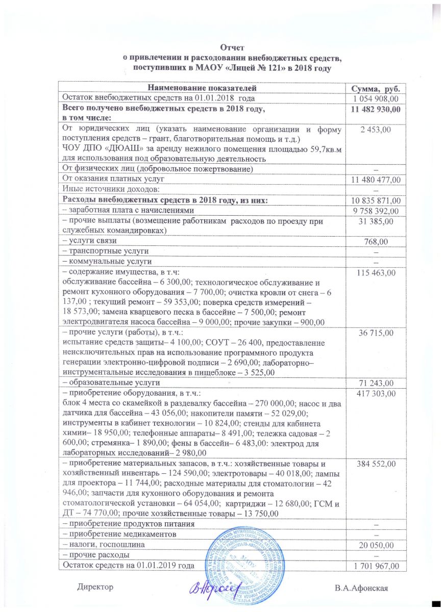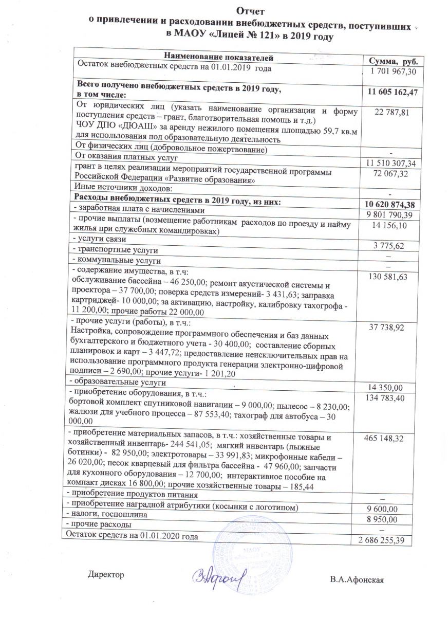 Отчет о поступлении и расходовании внебюджетных средств