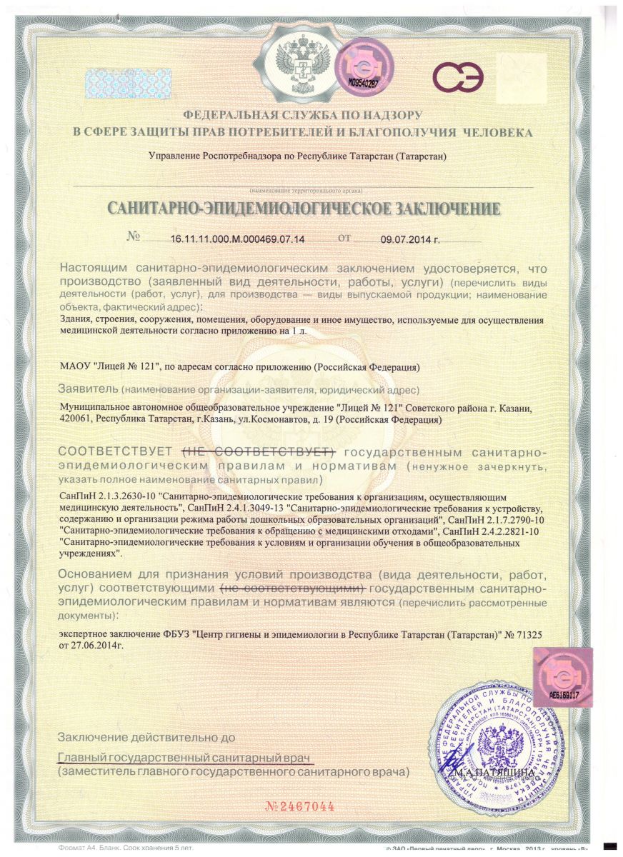Санитарно эпидемиологическое заключение на медицинскую деятельность.