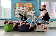 На месте мы не сидим. Например, сегодня мы сразу после наших утренних дел отправились по автобусам, чтобы добраться до театра на Булаке. Это было что-то невероятное, мы стали участниками интерактивного научно-познавательного шоу. Познакомились с Энштейном и Менделеевым, стали свидетелями научных открытий и фантастических экспериментов.
