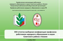 1 ноября на базе нашего лицея состоялась отчетно-выборная конференция профсоюза работников народного образования и науки Советского района г.Казани.В профсоюзной организации Советского района Казани произошла смена руководителя. Вместо Ольги Пукиревой на должность председателя районного комитета Профсоюза была выбрана заведующая детским садом №394, в свое время возглавлявшая отдел образования Советского района Казани, Венера Нуреева.