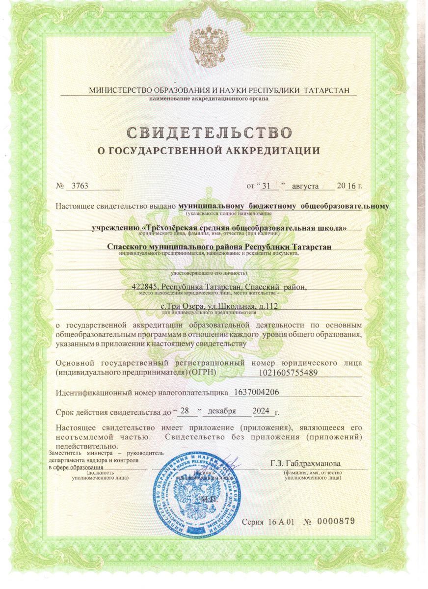 муниципальное бюджетное общеобразовательное учреждение «Трёхозёрская средняя общеобразовательная школа» Спасского муниципального района Республики Татарстан/Татарстан Республикасы Спас муниципаль районы “Өчкүл урта гомуми белем бирү мәктәбе” муниципаль бюджет гомуми белем бирү учреждениесе