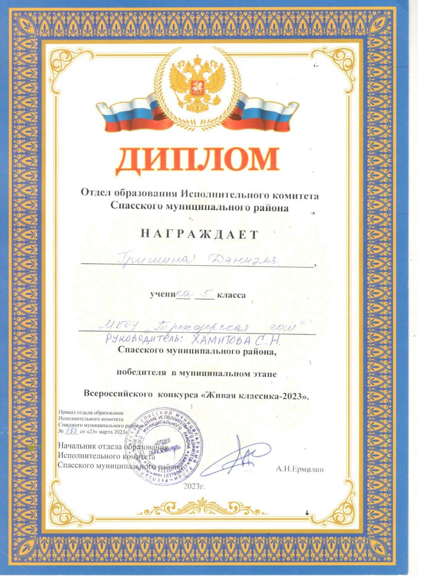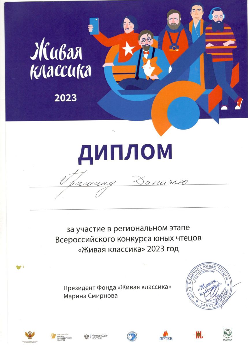 Живая классика участник Гришин Даниэль