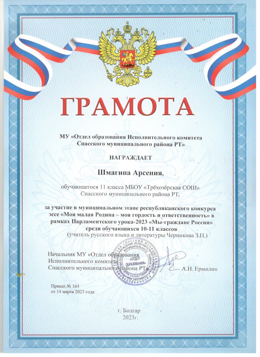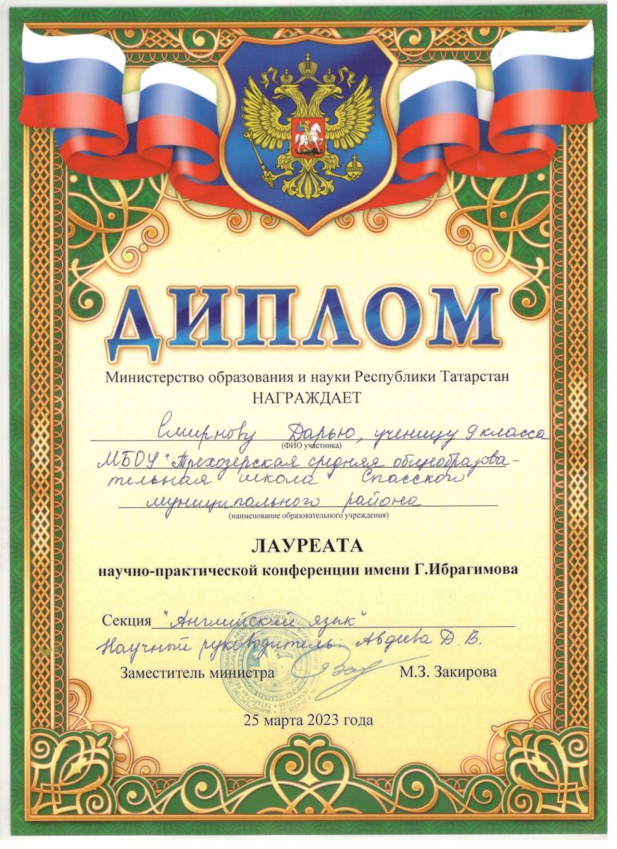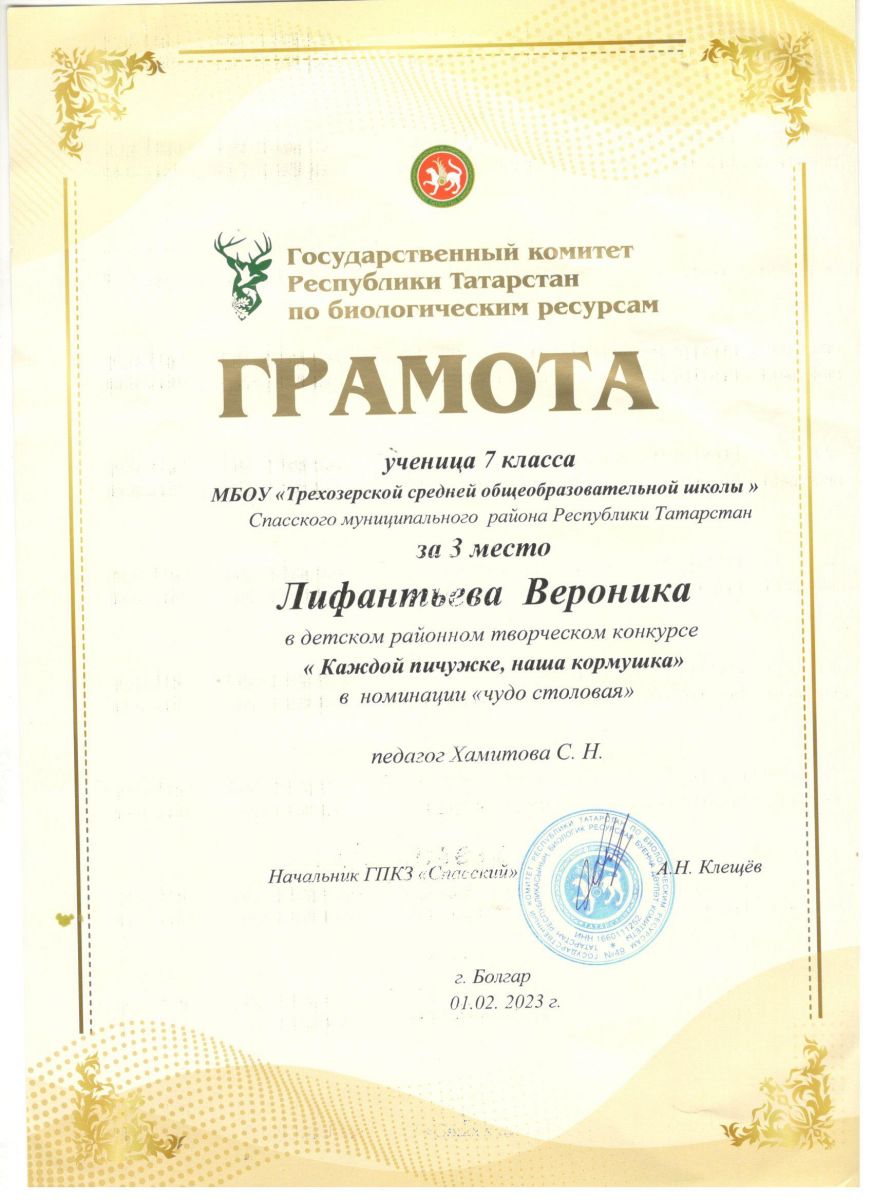 муниципальное бюджетное общеобразовательное учреждение «Трёхозёрская средняя общеобразовательная школа» Спасского муниципального района Республики Татарстан/Татарстан Республикасы Спас муниципаль районы “Өчкүл урта гомуми белем бирү мәктәбе” муниципаль бюджет гомуми белем бирү учреждениесе