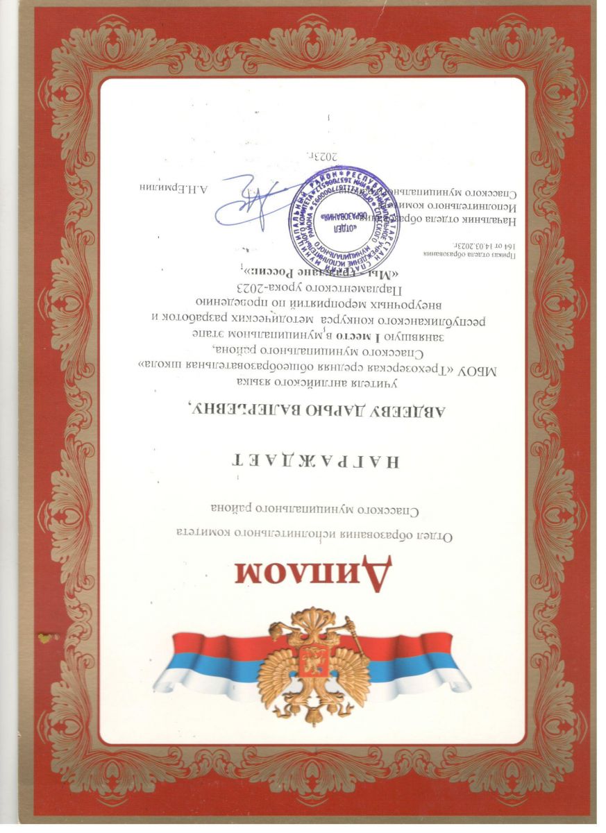 Диплом лауреата Егоров Евгений