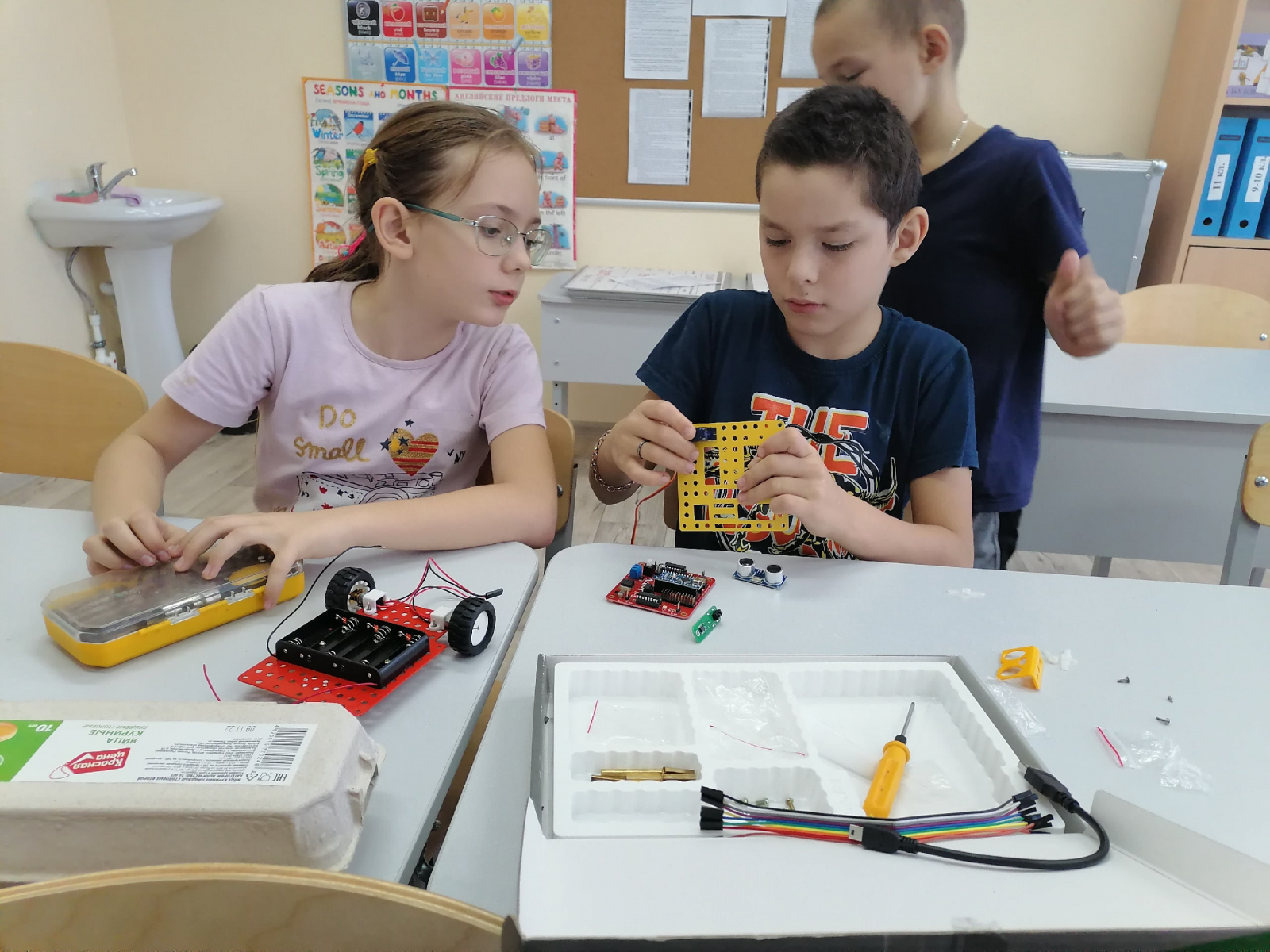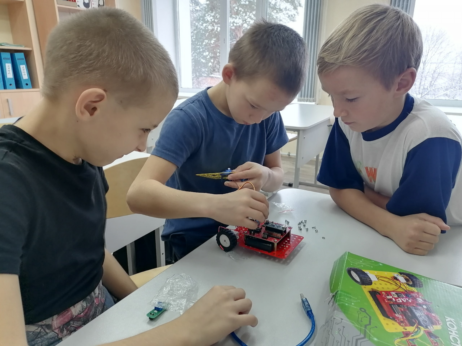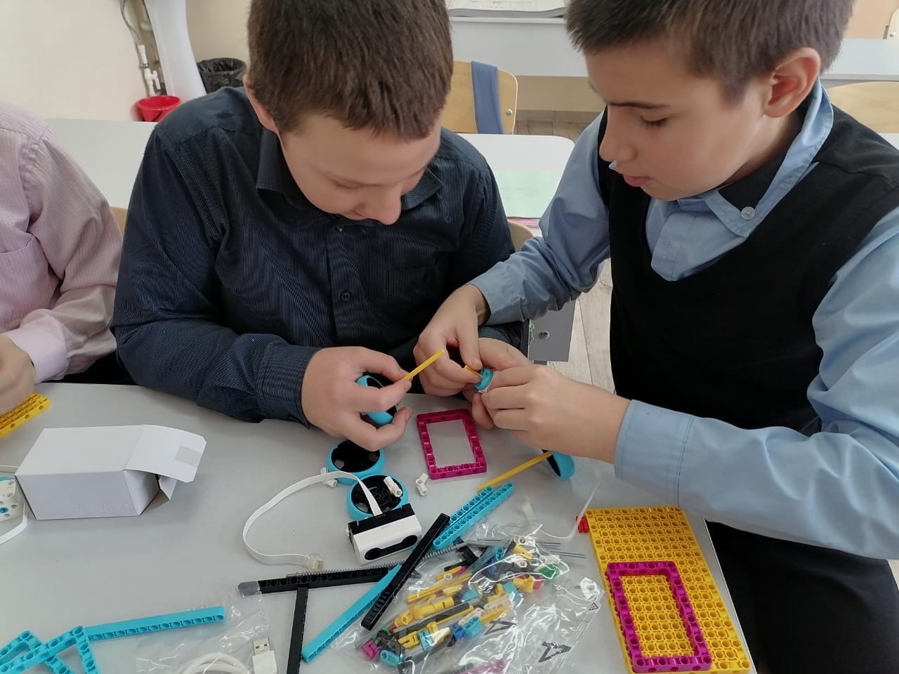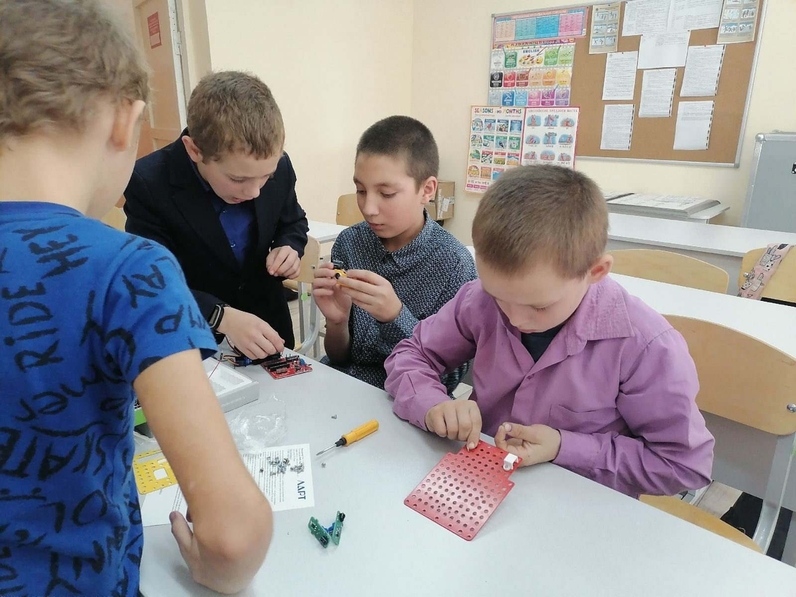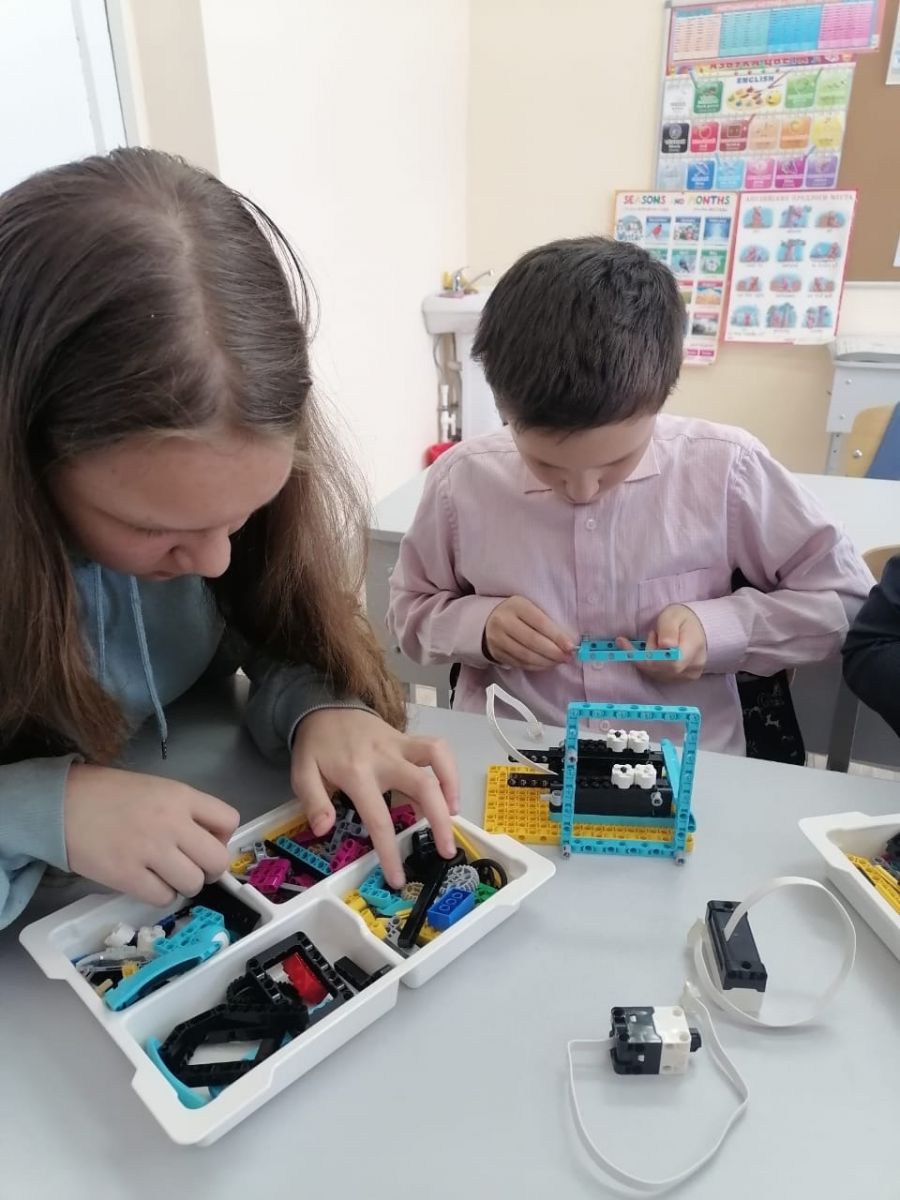 В рамках кружка "Роболаборатория" с обучающимся 4 класса конструировали роботов из заранее спроектированных моделей роботов.
