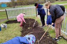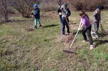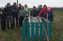 Учащиеся школы, привели в порядок после зимы , место, где жил Антон Петров , сейчас на месте дома лежит памятная плита