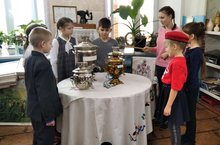 Для учащихся 3 класса была организована экскурсия в школьный музей. Руководитель музея Гайнуллина Гюзель Мингарифовна познакомила ребят с историей возникновения самоваров, а ученица 11 класса Осипова Карина провела с ребятами беседу "Самовары- национальная гордость".
