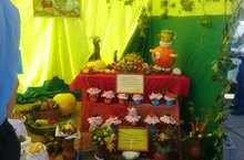 Тема нашей школы- "Овощной праздник", мы представили гостям композицию "День рождения Мухи-Цокотухи".