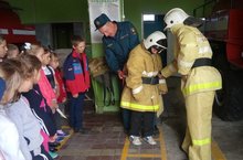 Традиционно в сентябре ученики начального звена, входящие в состав ГПД, посетили пожарную часть села. После построения ребятам рассказали что нового появилось за это время, они просмотрели тематический мультфильм, о правилах поведения в ЧС и при эвакуации. Колесов Андрей Иванович провел с детьми викторину на противопожарную тему, все ученики отлично справились с вопросами. С большим удовольствием ребята примерили экипировку пожарных, осмотрели технику, спец.инструменты.