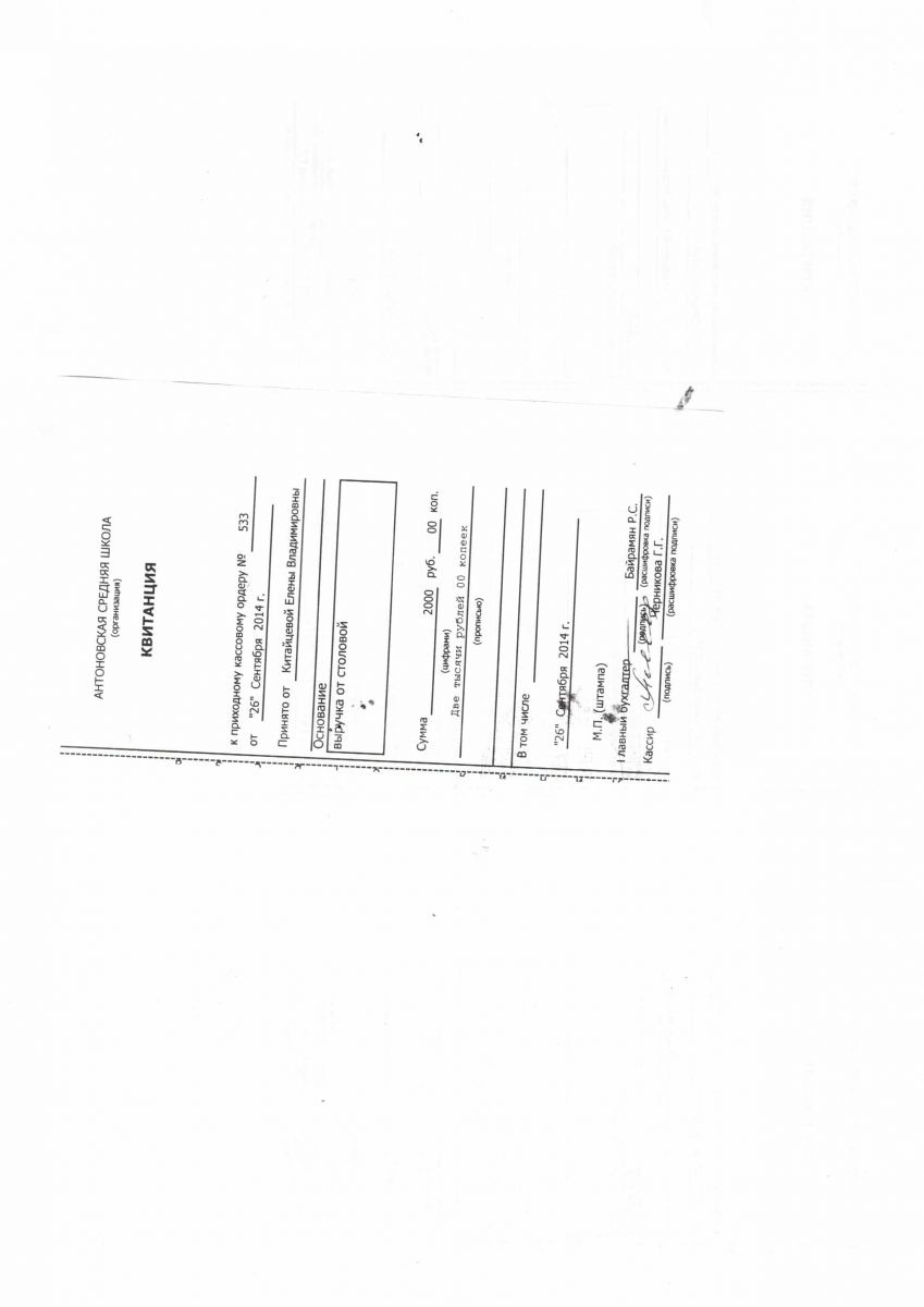 Публичный отчет ( квитанции ик приходному кассовому ордеру , , квитанция 2)