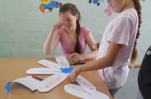 День в пришкольном лагере "Дружба" начался с энергизаторов, которые помогли настроить детей на предстоящие дела. Затем была прведена музыкальная зарядка. После завтрака началась конкурсная программа ко Дню Росси. Она состояла из нескольких станций: «Визитная карточка страны», «Символы государства», «Загадки и пословицы о Родине», «Знаменитые русские», «Творческая», «Русские игры». Дети нарисовали рисунки и выполнили аппликации на тему дня, просмотрели презентацию «Моё село – крошечная часть моей огромной страны». Фото для этой презентации дети сделали во время прогулки 7 июня. После просмотра слайдов занялись составилением отрядной Книги Гиннесса своих достижений и способностей. Завершением насыщенного и интересного дня стали подвижные игры: «Вышибалы», «Гуси-гуси», «Коты и мыши».