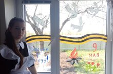 С 1 по 9 мая 2021 года проводится Всероссийская патриотическая акция «Окна Победы». Главные аспекты акции: создать атмосферу одного из самых важных праздников в России, передать молодому поколению его традиции, выразить свою благодарность героям Великой Отечественной войны 1941–1945 годов, почтить память об ушедших ветеранах. Черняева Яна, ученица 7 класса, присоединилась к акции, украсив окно своего дома символами Великой Победы.
