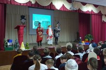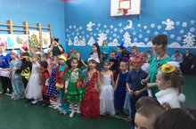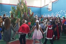 Новогоднее представление для начальной школы 26.12.2019 Сегодня в нашей школе для учащихся начальных классов прошло новогоднее представление. Во время представления к учащимся в гости приходили сказочные персонажи: скоморохи, Атаманша, Разбойники, Зима, Снежная Королева, Кикимора, Баба Яга, дед Мороз и Снегурочка. Праздник получился сказочным, весёлым. Дети пели песни и танцевали зажигательные танцы, играли в веселые конкурсы и разные игры. Ребята получали подарки, сладкие призы от Деда Мороза. На елке присутствовали администрация школы, родители. Дети были награждены грамотами и подарками.
