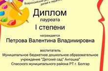 Диплом лауреата 1 степени награждается педагог Петрова Валентина Владимировна