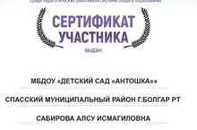 Наш педагог Сабирова Алсу Исмагилловна получила сертификат участника Всероссийского конкурса методических разработок.