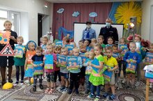 Сегодня у нас в гостях был начальник ОГИБДД ОМВД по Спасскому району майор полиции Ганиев Р.Н., он рассказал детям о правилах поведения на дороге, а также детям были вручены подарки. А также дети старшей подготовительной и средней группы вспомнили правила поведения на дороге, сигналы светофора, правила в общественном транспорте, а также как правильно переходить дорогу и конечно же закрепили названия дорожных знаков.
