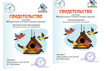 Наш педагог Баскакова Елена Александровна и воспитанник Мельников Арсений получили свидетельство участника конкурса - кормушек.