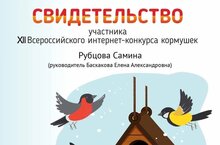 Наша воспитанница Рубцова Самина приняла участие в интернет-конкурсе кормушек и получила свидетельство участника. Педагог Баскакова Елена Александровна.